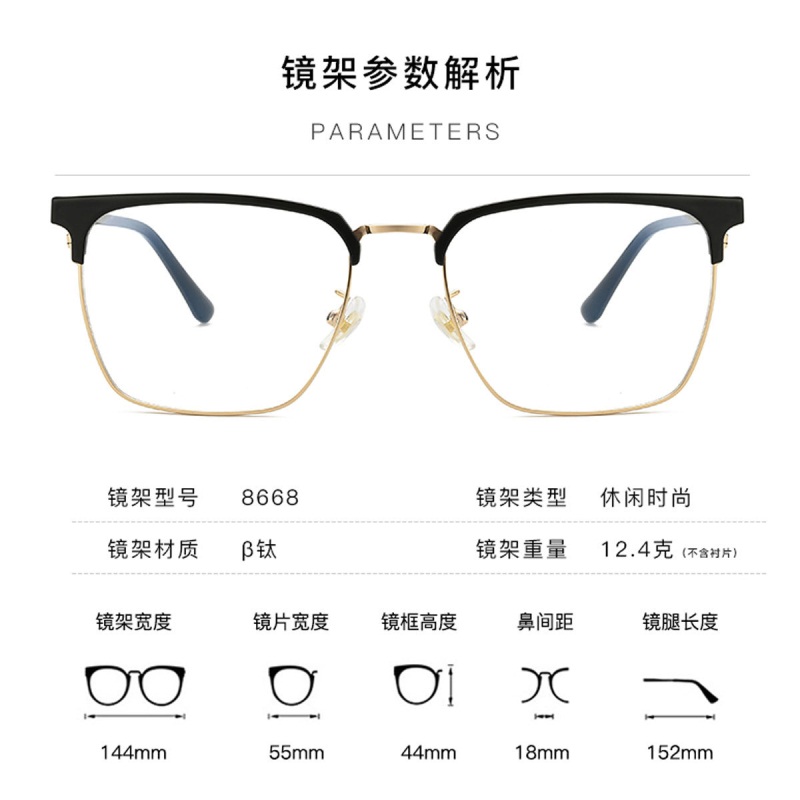 Attribute style: Full framework Popular elements: Xiaohongshu popular item, Instagram style Glasses style: box Suitable for face shape: Big face For the crowd: men Mirror frame material: Half titanium style: Retro Brand: 菲利莱 Tip: Click the image to translate text.
