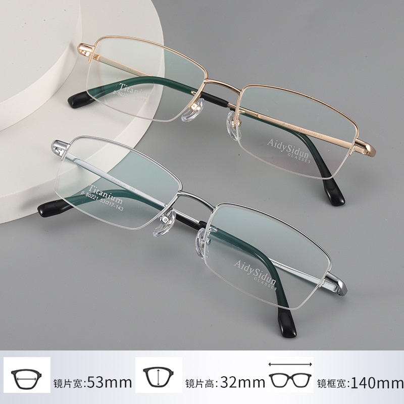 Attribute Glasses style: box Glasses structure: Half frame For the crowd: adult Mirror frame material: Half titanium lens material: PC style: Business, versatile, elegant, minimalist, minimalist Style classification: Fashionable commuting specifications: 53-17-143 Brand: 爱迪斯顿 Tip: Click the image to translate text.