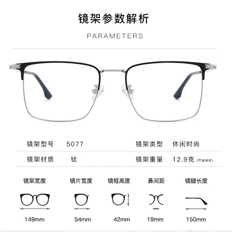 Attribute Product Category: Eyeglass frame style: Full framework Glasses style: Box Suitable for face shape: Big face For the crowd: men Mirror frame material: metal style: commercial affairs Brand: 菲利莱 Tip: Click the image to translate text.