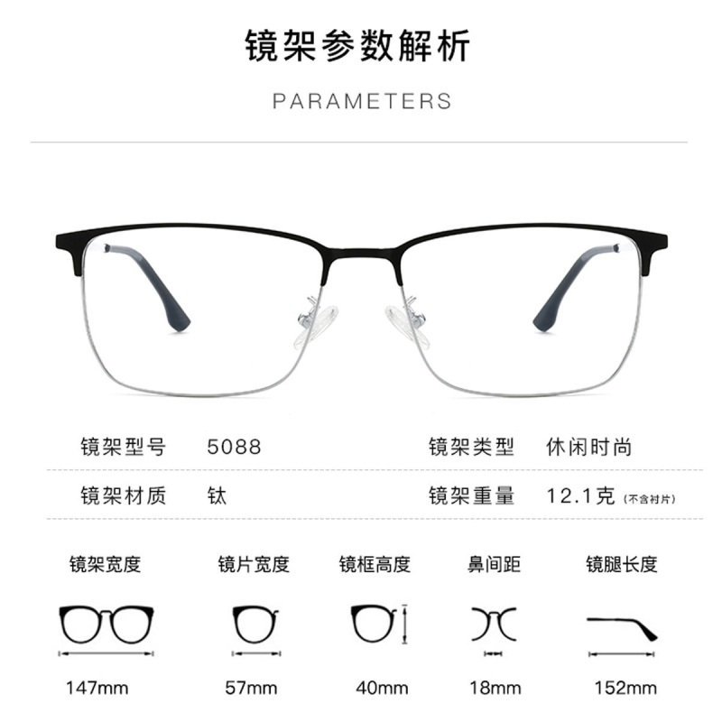 Attribute Product Category: Eyeglass frame style: Full framework Glasses style: box Suitable for face shape: Big face For the crowd: men Mirror frame material: metal style: commercial affairs Brand: 菲利莱 Tip: Click the image to translate text.