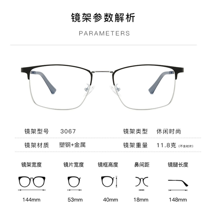 Attribute Product Category: Eyeglass frame number of degrees: not have material: Plastic steel+metal style: Full framework Glasses style: box Suitable for face shape: Big face For the crowd: general Mirror frame material: Plastic steel+metal style: delicate Brand: 菲利莱 Tip: Click the image to translate text.