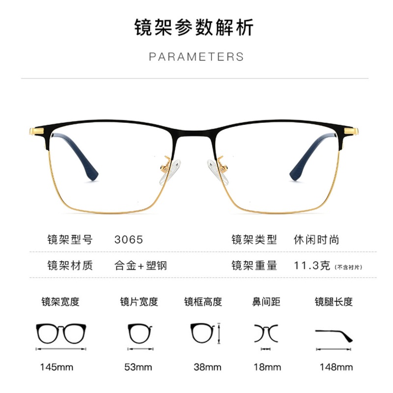 Attribute number of degrees: not have material: Plastic steel+metal style: Full framework Glasses style: box Suitable for face shape: Big face For the crowd: general Mirror frame material: Plastic steel+metal style: delicate Brand: 菲利莱 Tip: Click the image to translate text.