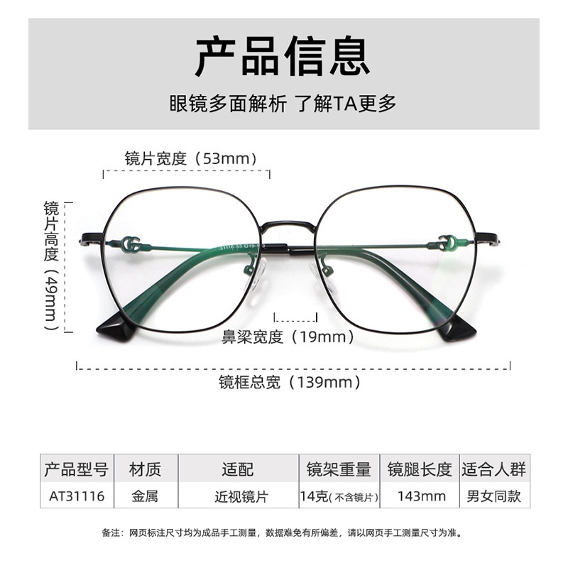 Attribute style: Full framework Glasses style: polygon Suitable for face shape: Big face For the crowd: general Mirror frame material: Plate+metal style: literature and art specifications: 53 mouths 19-139 Brand: 安藤百福 Tip: Click the image to translate text.