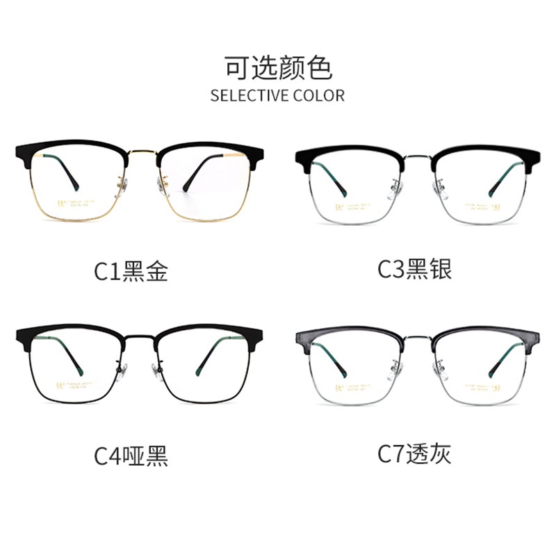 Attribute style: Full framework Glasses style: box Suitable for face shape: Big face For the crowd: general Mirror frame material: Half titanium style: leisure specifications: 53 mouths 18-145 Brand: 安藤百福 Tip: Click the image to translate text.