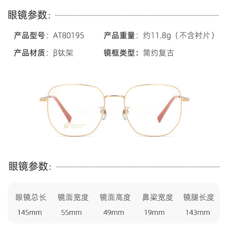 Attribute style: Full framework Glasses style: polygon Suitable for face shape: Big face For the crowd: general Mirror frame material: Half titanium style: trend specifications: 55 mouths 19-143 Brand: 安藤百福 Tip: Click the image to translate text.