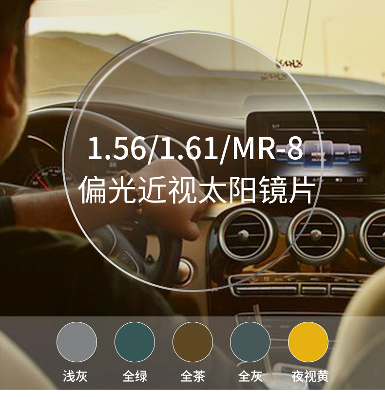 定制偏光镜片 直径80近视树脂太阳镜片 炫彩偏光近视眼镜片 驾驶
