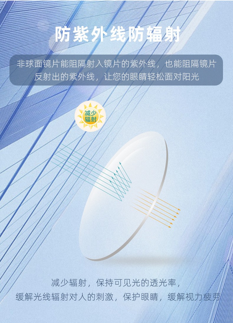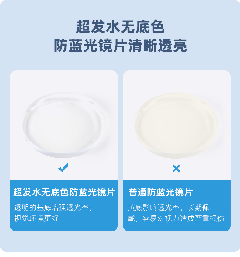 1.61无底色非球面防蓝光 近视树脂镜片