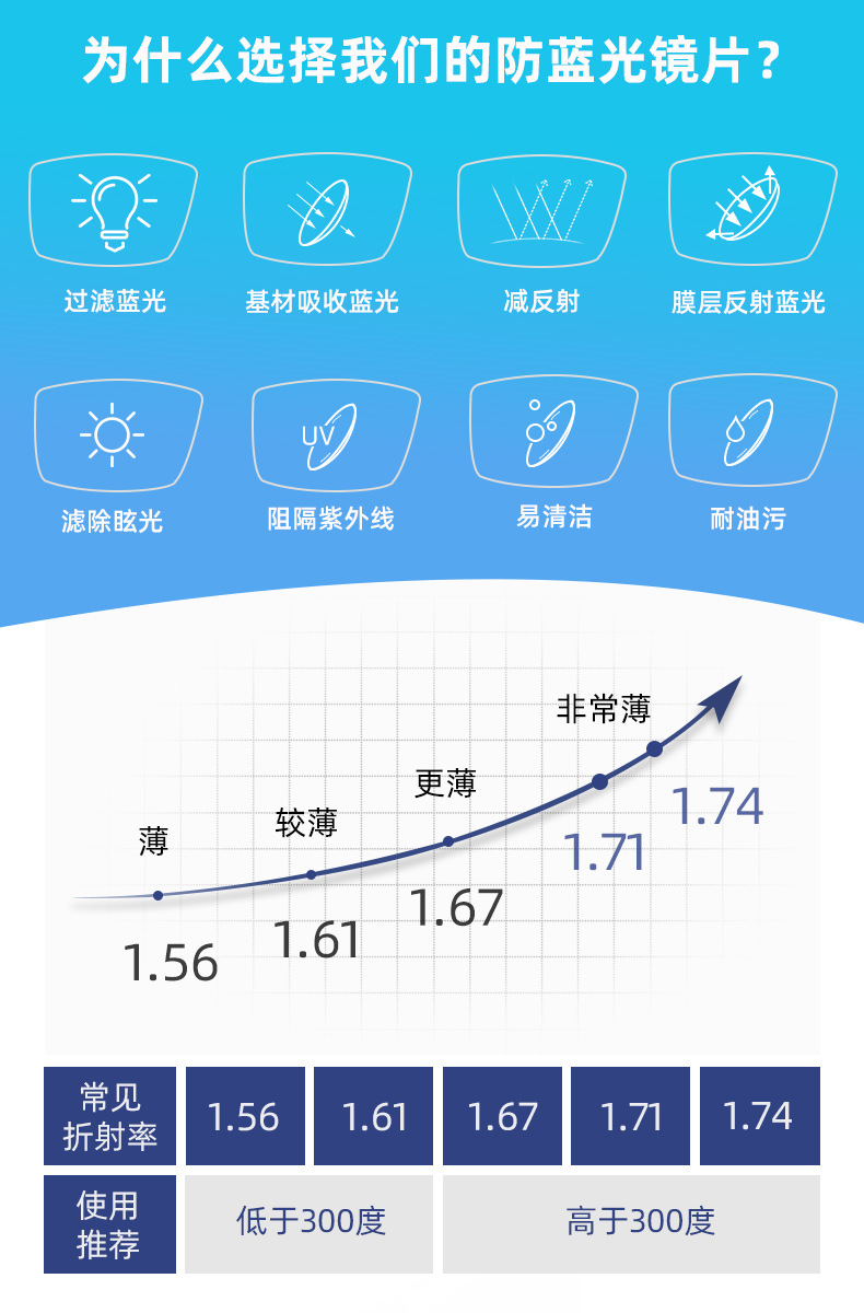 1.74防蓝光(0.00~-25.00/-6.00;0.00~+13.00/-6.00) 【