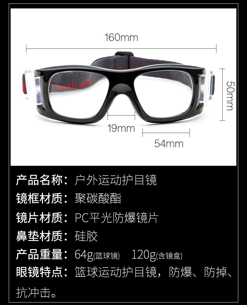 大框运动眼镜 篮球镜足球骑行防撞 户外运动装备镜盒