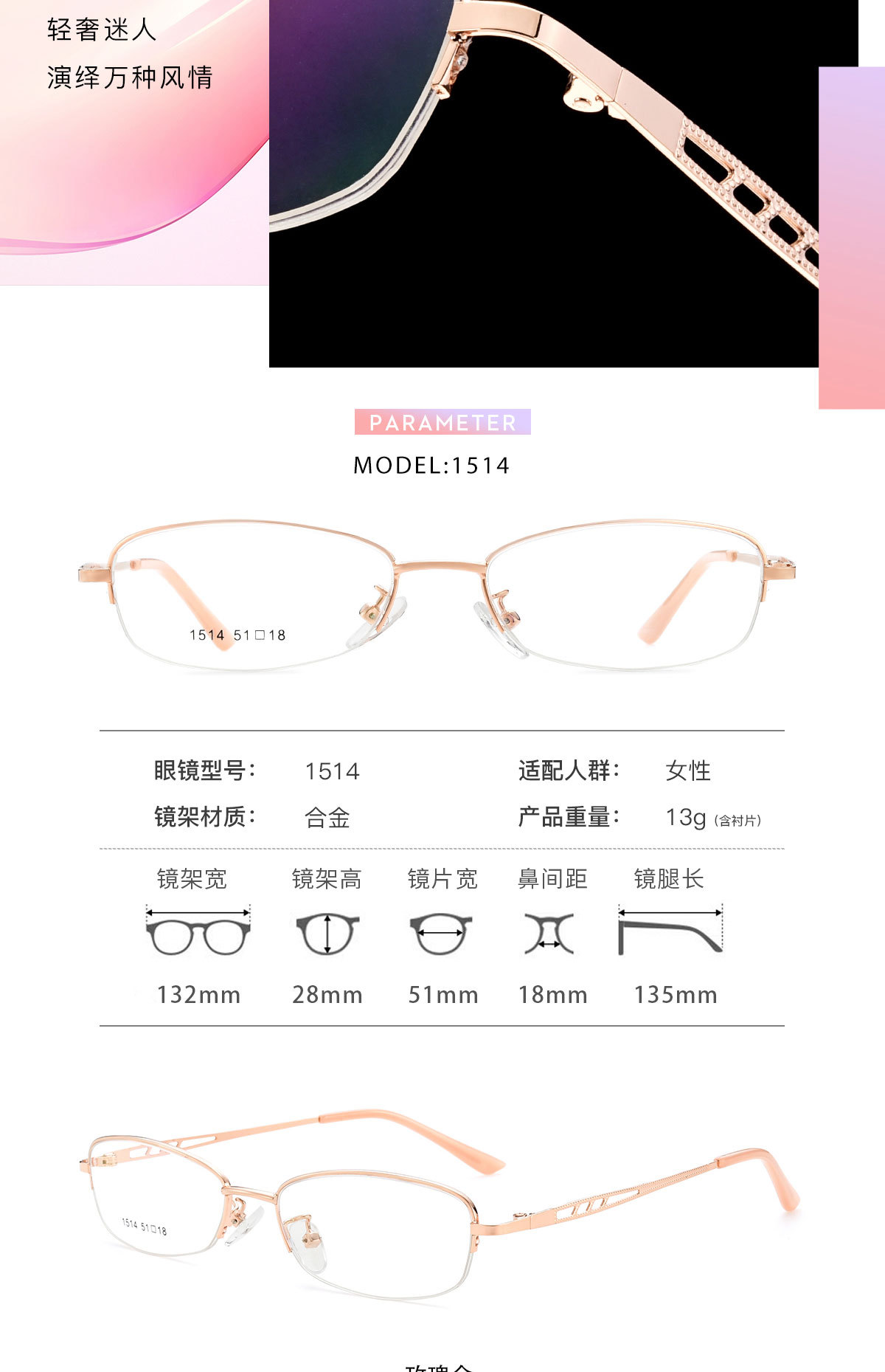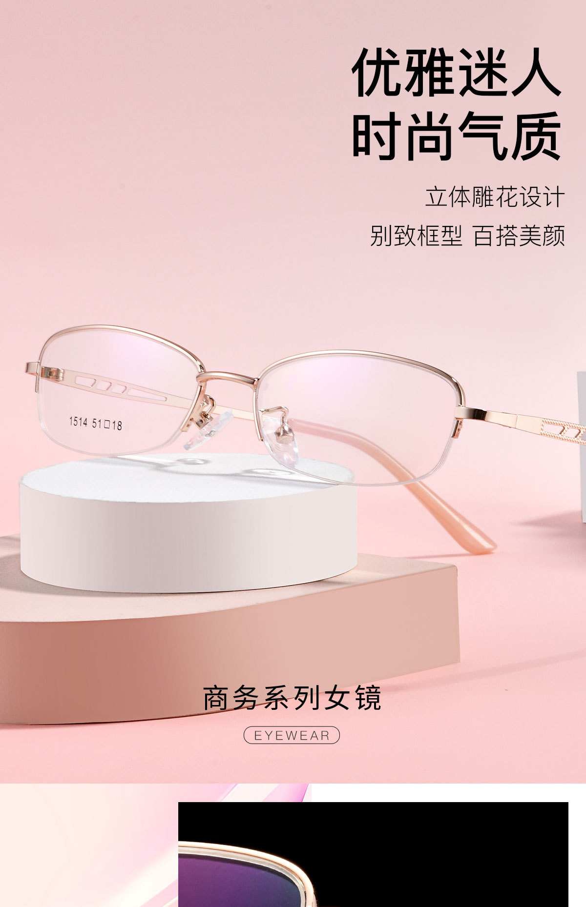 新款近视眼镜架女半框复古商务眼镜框镂空镶钻镜腿镜框
